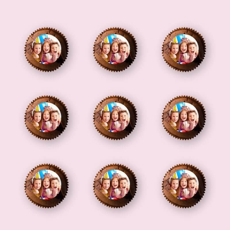 70kr. – 90kr.Prisinterval: 70kr. til 90kr.Sukkerprint med eget billede - Kageprint til Cupcakes Ø5cm ,15 stk
