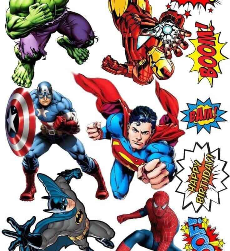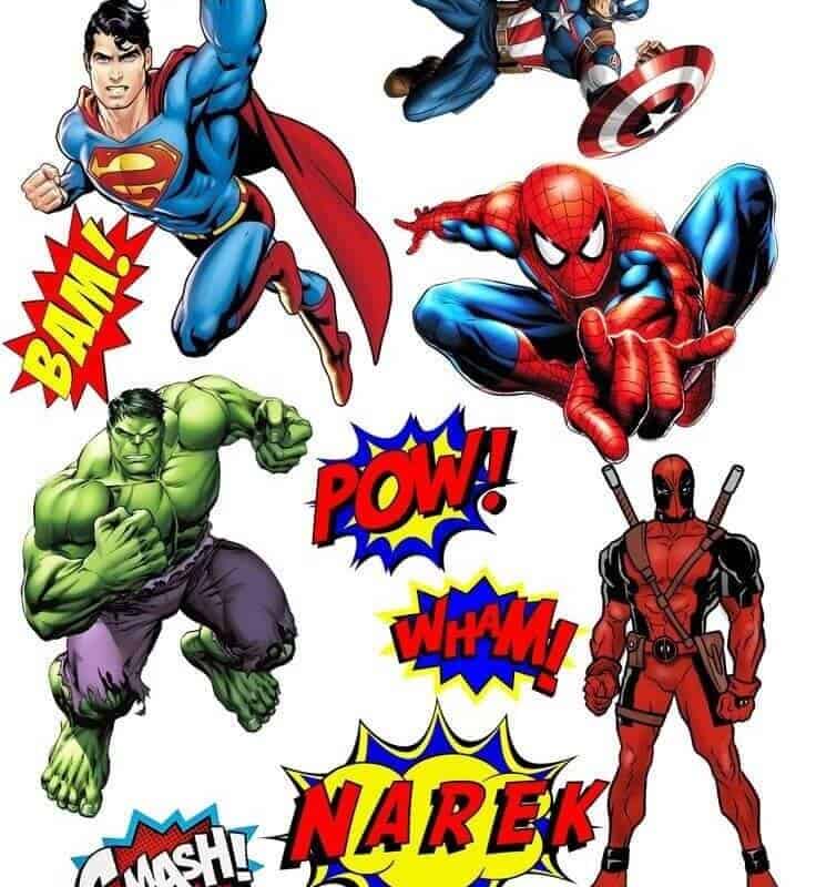 Avengers cartoon, 5cm, sukkerprint / kageprint med tekst, 15 STK