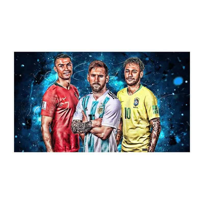 Sukkerprint/Kageprint Fodbold Ronaldo, Lionel Messi, Neymar 19×27 cm, med tekst