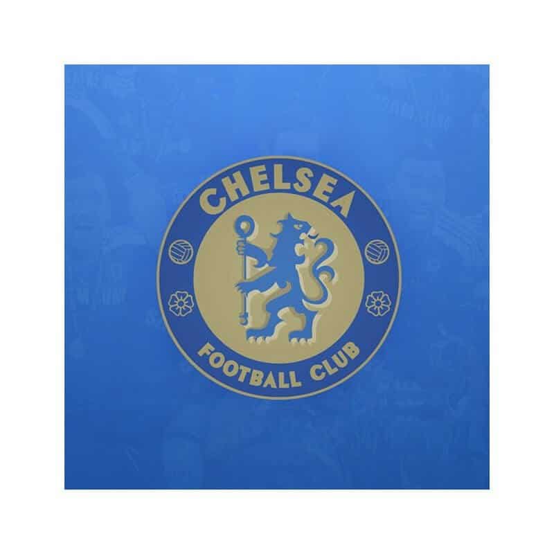 Sukkerprint/Kageprint Fodbold Chelsea Football Club logo 19×19 cm, med tekst