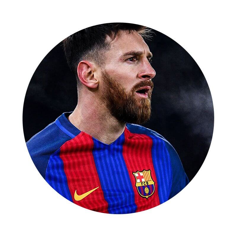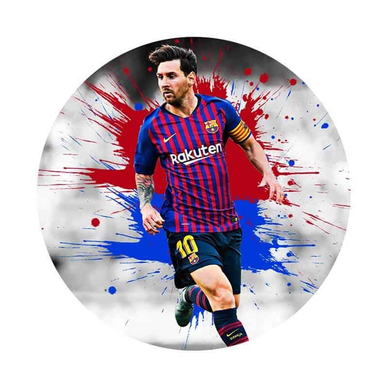 Sukkerprint/Kageprint Fodbold Messi Barcelona 19 cm, med tekst