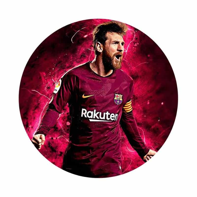 Sukkerprint/Kageprint Fodbold Lionel Messi Art 19 cm, med tekst
