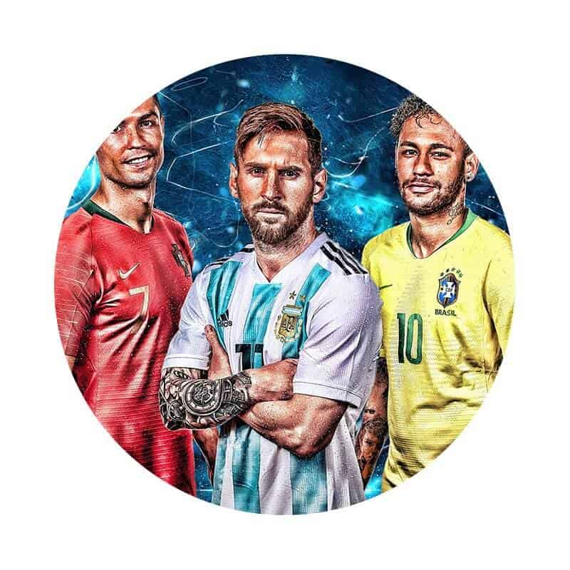 Sukkerprint/Kageprint Fodbold Ronaldo, Lionel Messi, Neymar 19 cm, med tekst