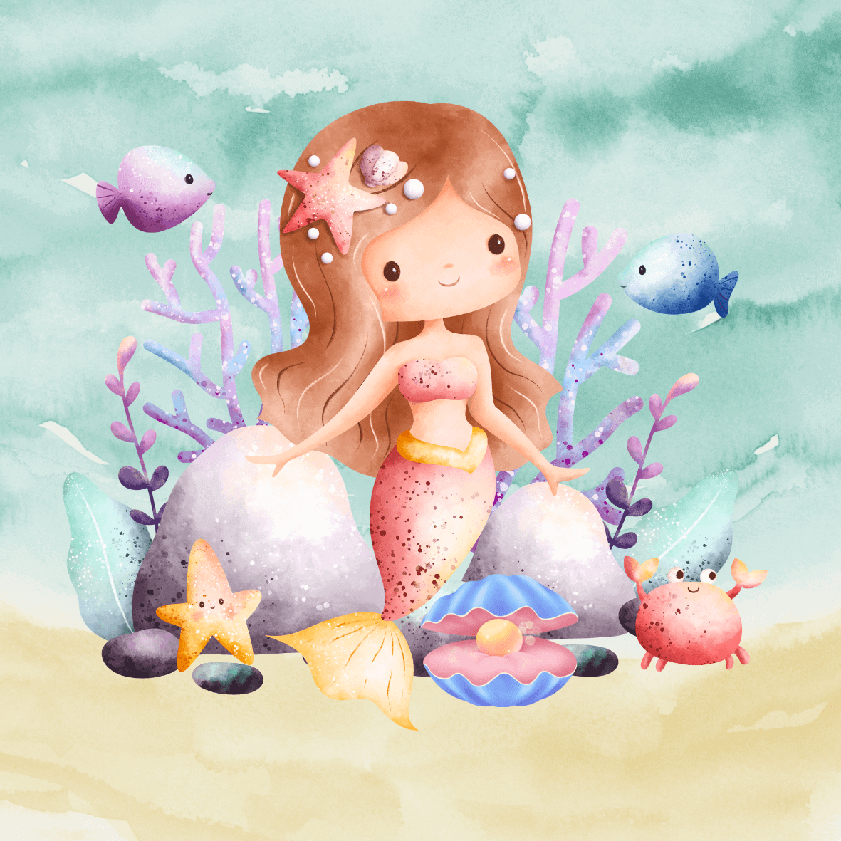 Dette Lille Havfrue sukkerprint passer perfekt til fødselsdage, havfrue-temaer, prinsesser eller undervandssjov. Med det ikoniske havfruemotiv og mulighed for personlig tekst bliver kagen et sikkert hit hos børn og gæster.