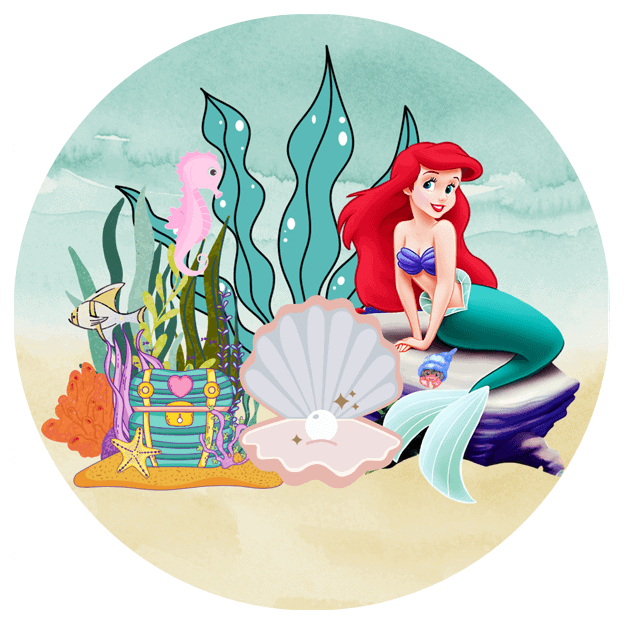 Dette Lille Havfrue sukkerprint passer perfekt til fødselsdage, havfrue-temaer, prinsesser eller undervandssjov. Med det ikoniske havfruemotiv og mulighed for personlig tekst bliver kagen et sikkert hit hos børn og gæster.