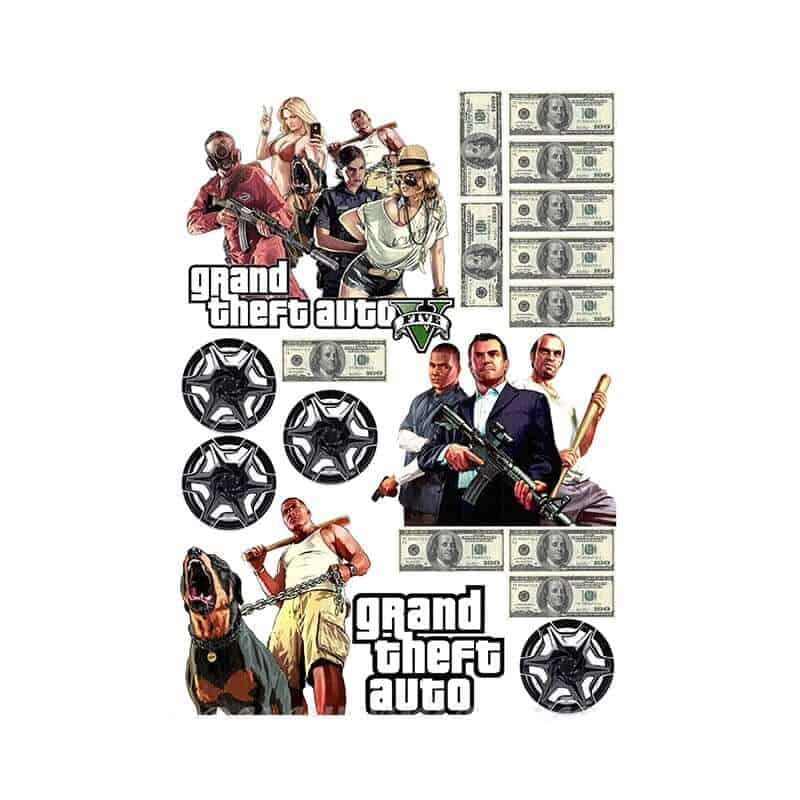 Hos Cakeprint.dk trykker vi dit GTA kageprint i høj kvalitet på vegansk sukkerpapir, så du får skarpe farver, et detaljeret motiv – og et finish, der skiller sig ud.