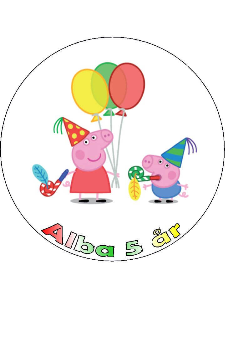 Gurli gris Fødelsdag 19cm, Sukkerprint / Kageprint med tekst